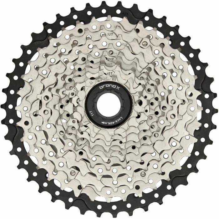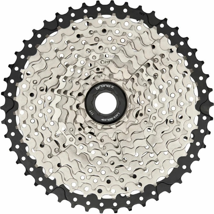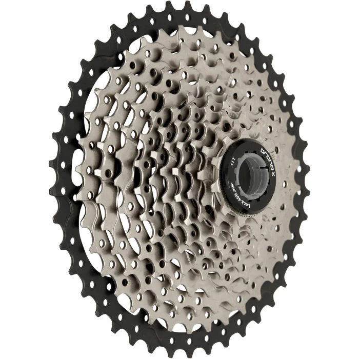 Featuring high tensile steel cogs on an alloy spider, the Brand-X 11 Speed MTB Cassette offers fantastic strength without adding any unnecessary weight to your ride. It is compatible with Shimano type 9-11 speed freehubs and all 11 speed chains.