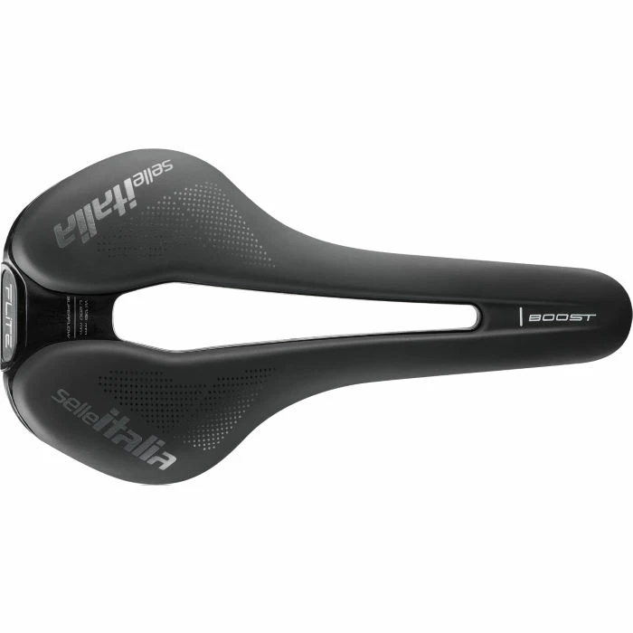 Flat and Boost Shape: The Flite Boost resumes the classic “Flat” shape that has always distinguished the FLITE family to guarantee, together with a more compact shape (248mm of length), the usual performance and maximum stability while pedalling.