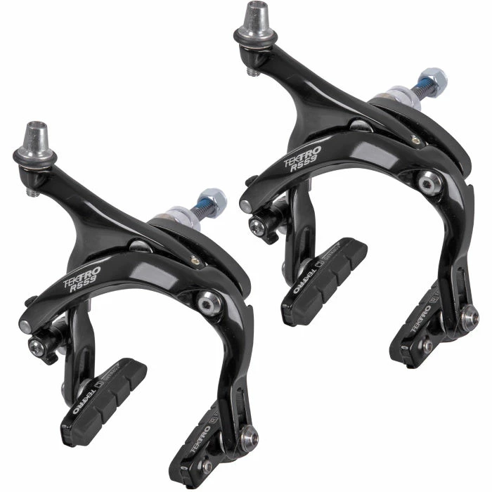 Kaliberbremse med dobbelt drejepunkt og arme i smedet aluminium samt kassetteklodser med justerbar vinkel. Nedsænket monteringssystem som på billedet.